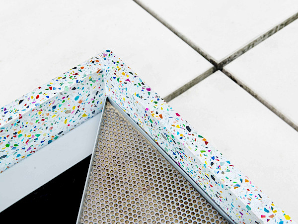 Throughout the years, ⌂ has developed various processes fusing modernday technology and traditional craftsmanship, exploiting terrazzo as a lightweight material. We want to be known as the go-to people for terrazzo. In spite of its ubiquity, terrazzo remains a largely unknown material: it is everywhere, yet no one notices. This is precisely what fuelled ⌂'s interest in reclaiming such and ancient and unexpected material - it all started with memories of high school hallways and classroom floors.